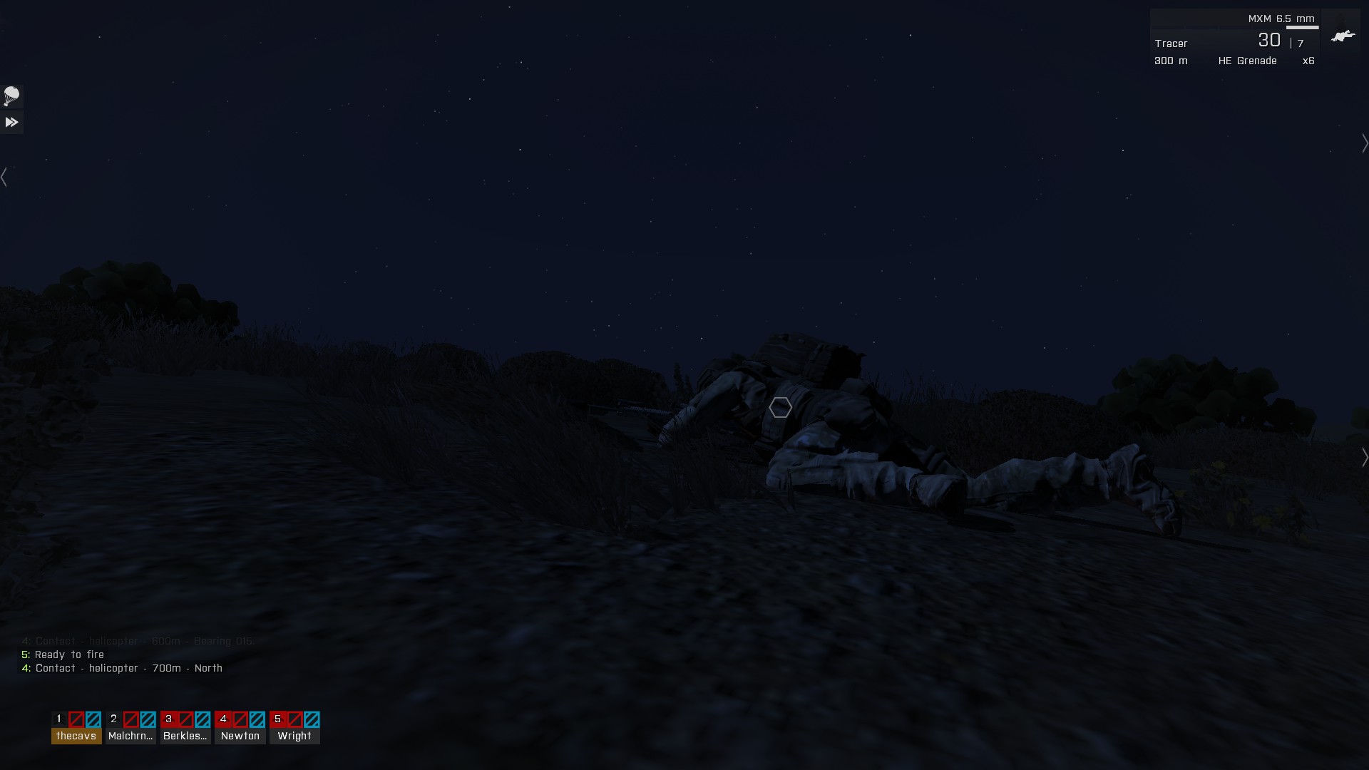 We took stock. We each had our silenced rifles, but no NVGs or heavy weaponry. On the other side of a hill a campfire beckoned, and we made our way toward it.