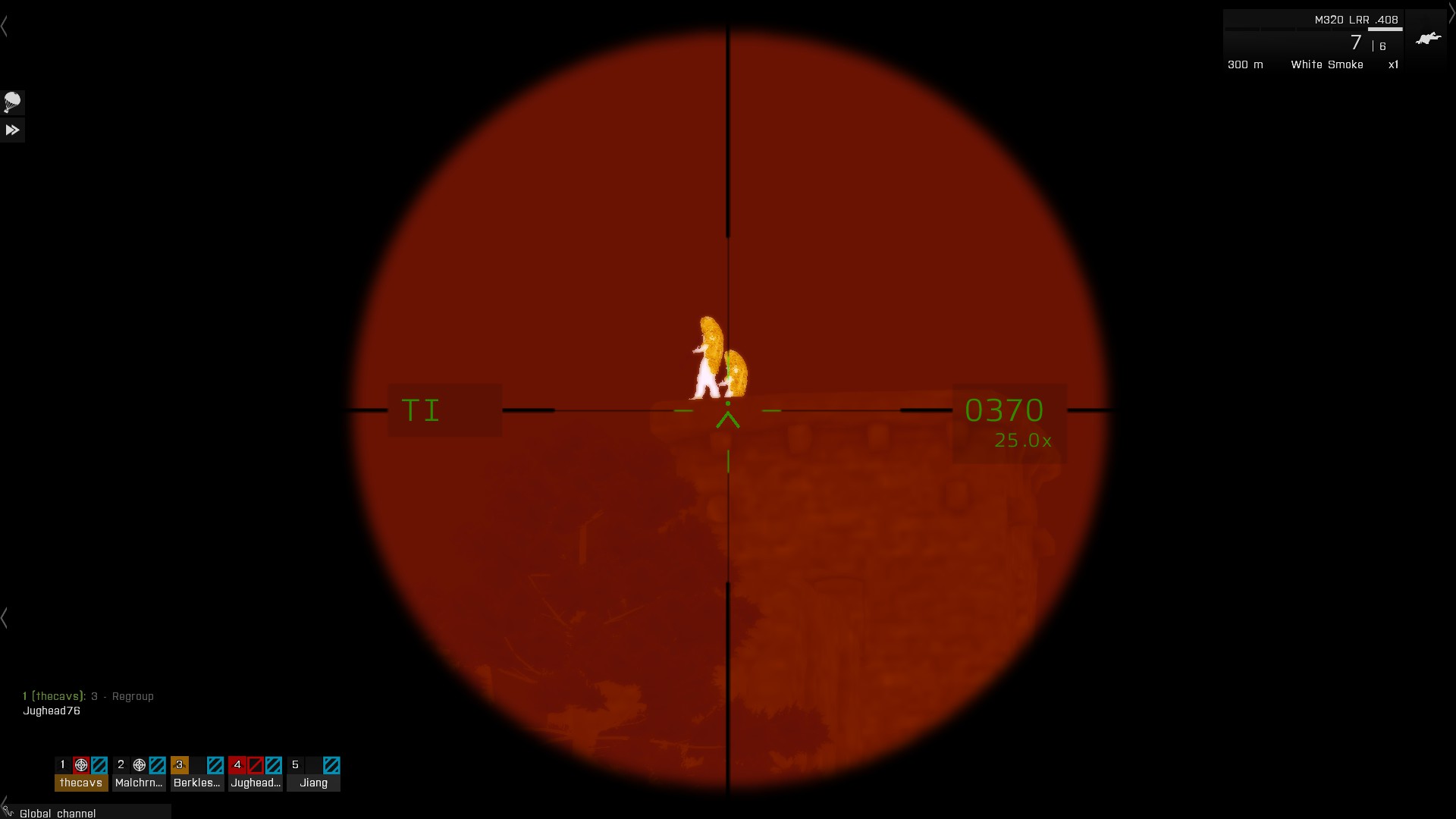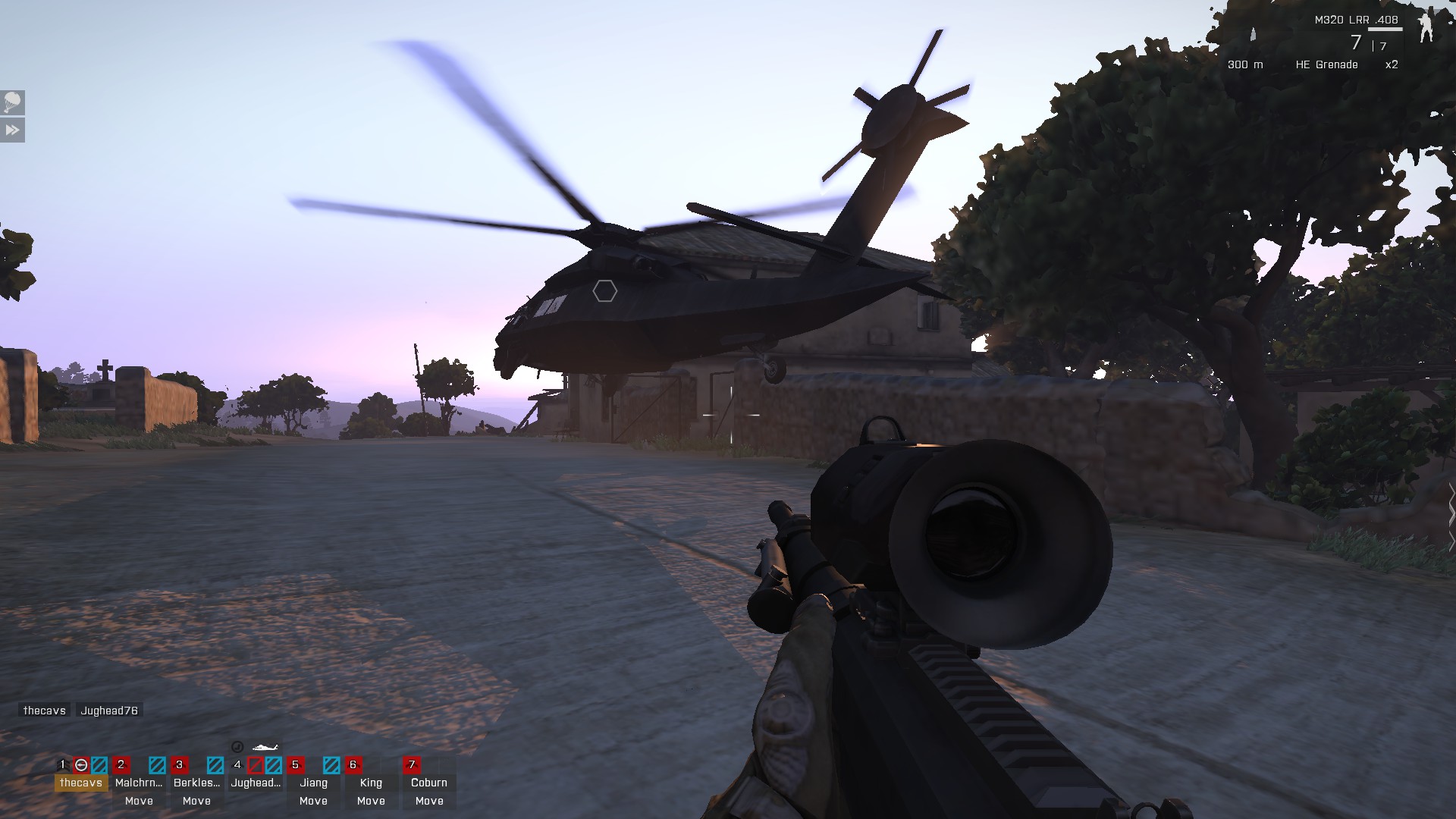 I spluttered a warning to my comrades, too late. Grenades showered onto the supply dump as our evil nemesis found us. I survived the initial barrage by diving behind a house, and was readying a rocket when it got me too.
