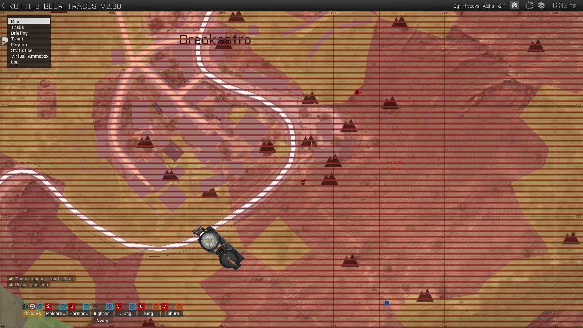 I crept inside, Christian at my back. I dispatched one OPFOR trooper, and Christian engaged in a shootout with another as the armour came back and blanketed the rest of SPLAT with HE. Once it was gone I revived them, then we all cleared the castle. Just as Ivan dispatched the last of the castle defenders with a well-placed grenade the armoured car appeared and blew us all to hell!